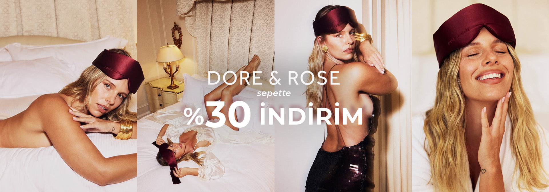 Dore & Rose - Şampanya %100 Dut İpeği Serenity Uyku ve Aksesuar Seti